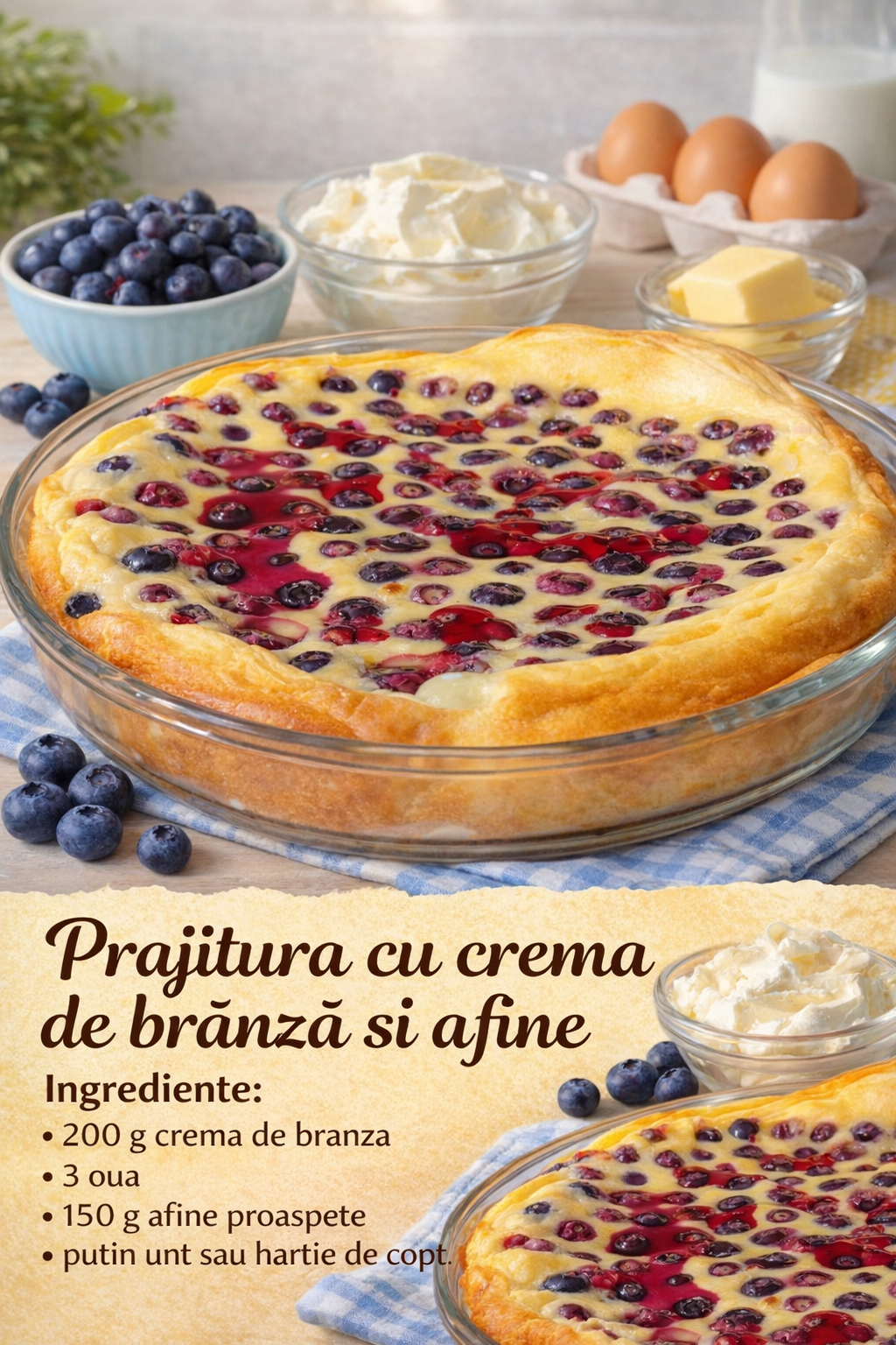 🫐 Prajitura rapida cu crema de branza si afine – fara faina, super usoara