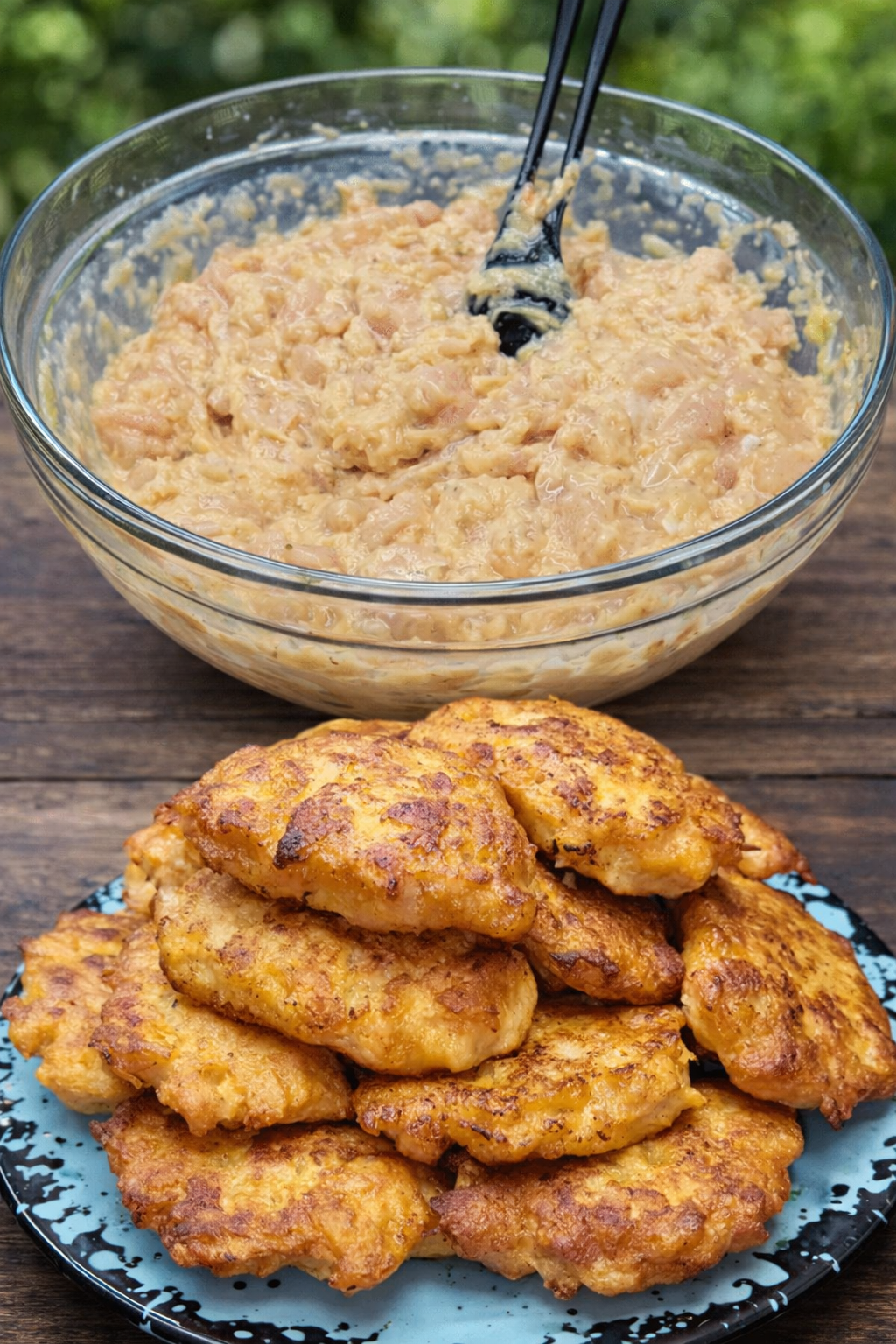 Dati cartofii, usturoiul si ceapa pe razatoarea cea mai mica si adaugati restul ingredientelor in orice ordine doriti.