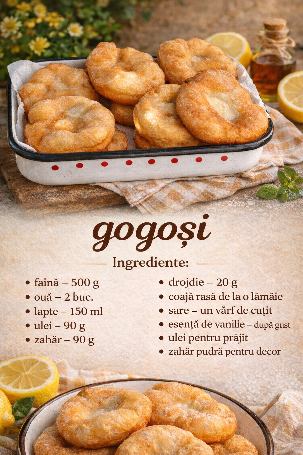 Cand aluatul este gata, intindeti o foaie grosuta si formati gogosile cu ajutorul unui pahar sau taiati-le pur si simplu.