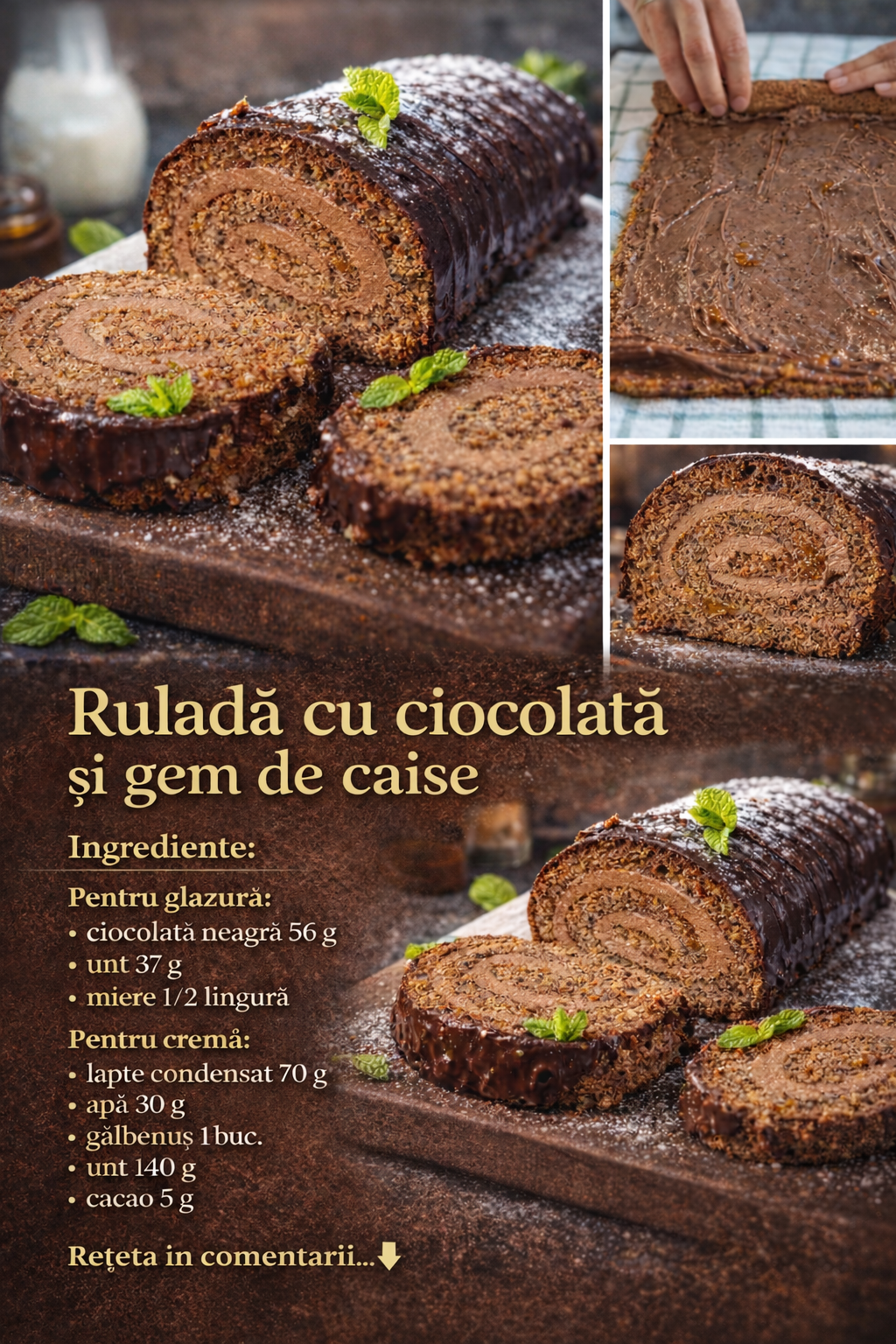 Glazura: Topiti untul, ciocolata neagra si mierea intr-o baie de apa sau cuptorul cu microunde.