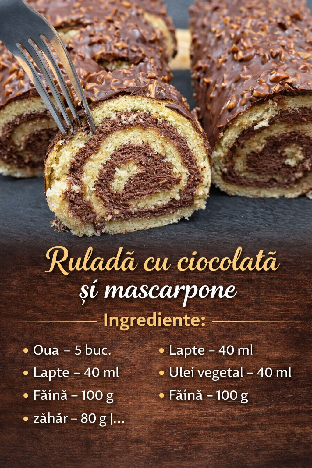 Sfat: Pentru ca rulada sa arate mai festiva, o poti servi cu putina frisca si fructe proaspete, precum capsuni, zmeura sau afine.