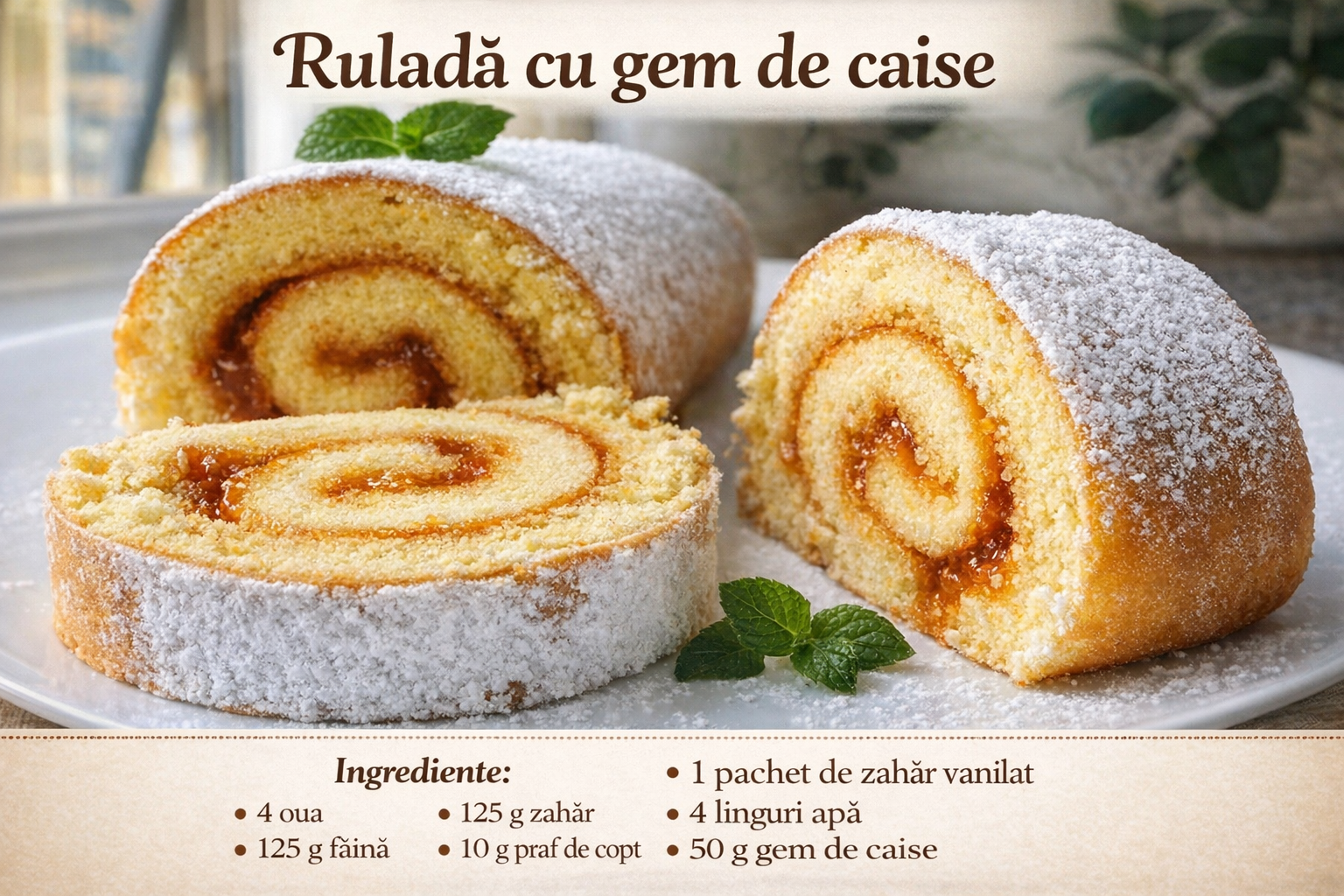 O reteta excelenta, simpla si clara pentru o rulada cu gem, care este gata in 15-20 de minute. Acest lucru va va salva, chiar daca aveti o vizita neasteptata si nu aveti nimic de oferit.