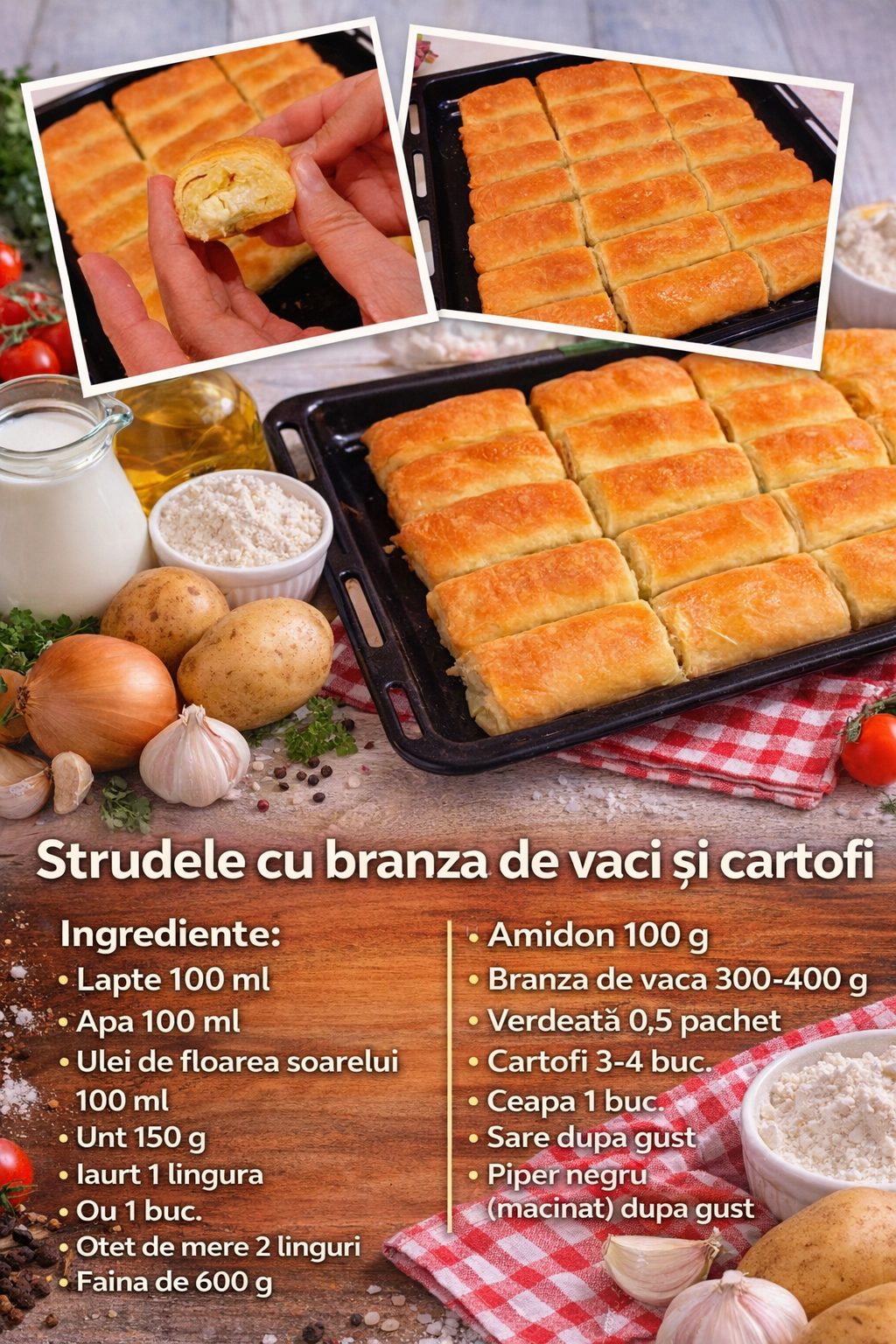 Strudele cu branza de vaci si cartofi- Crocante la exterior si fragede in interior
