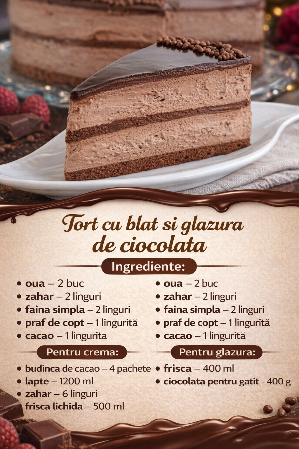 Dam prajitura la frigider pentru 15 minute, apoi decoram blatul cu decoratiuni de ciocolata si il punem din nou la frigider pana se fixeaza complet.