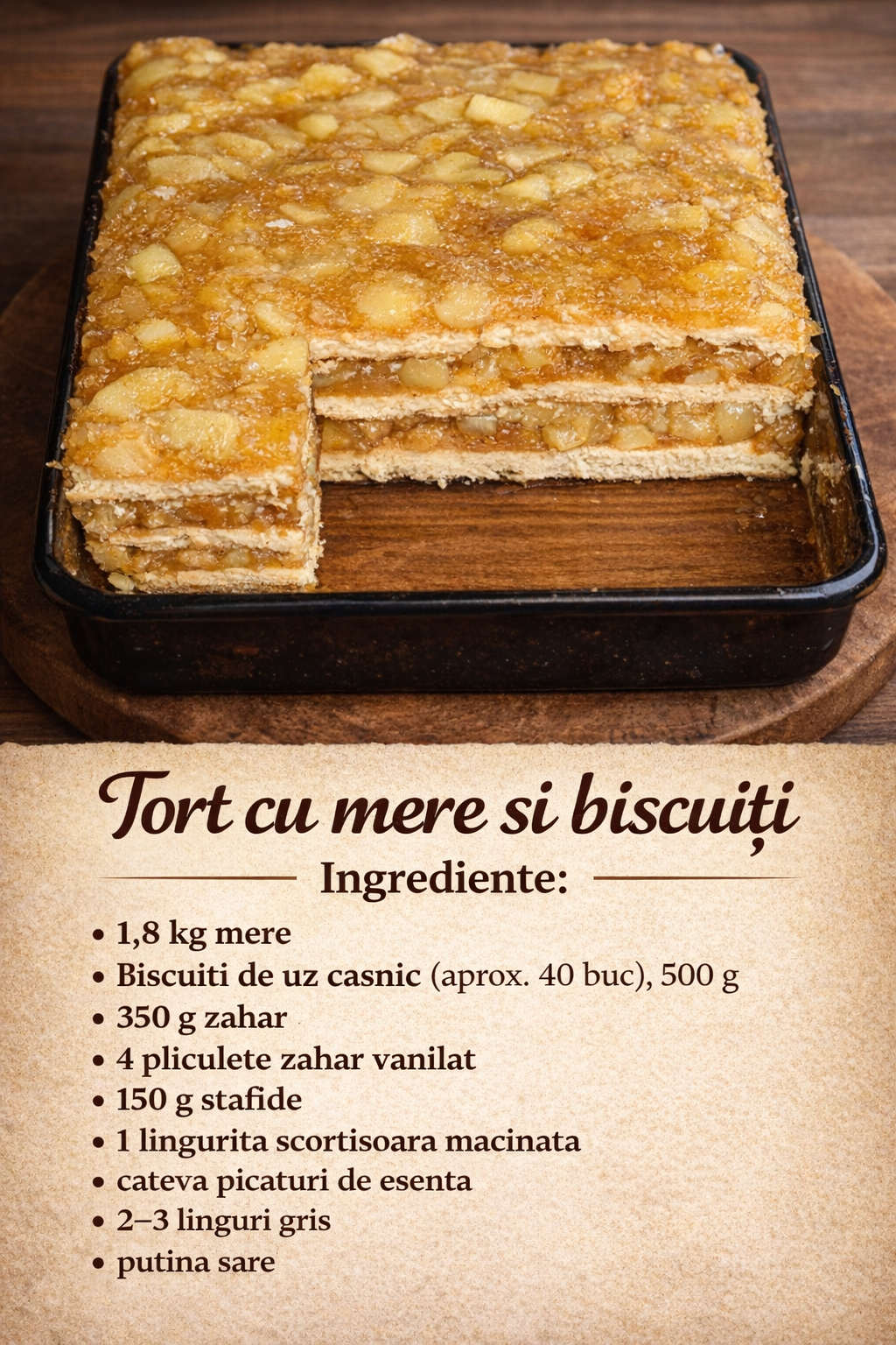 Tort cu mere si biscuiti. Nu necesita coacere