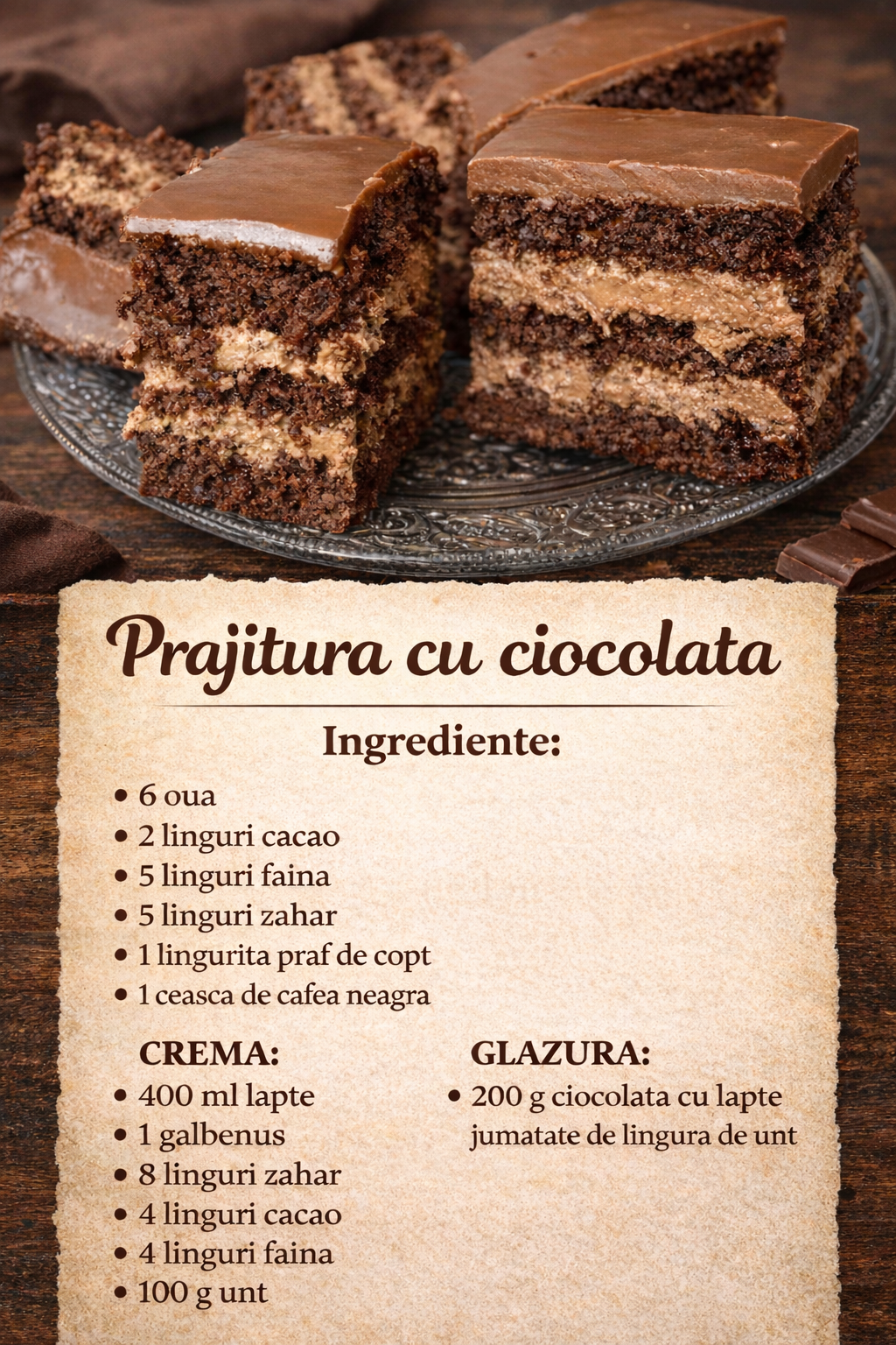 Tort delicios cu crema de ciocolata, este gata in 30 de minute