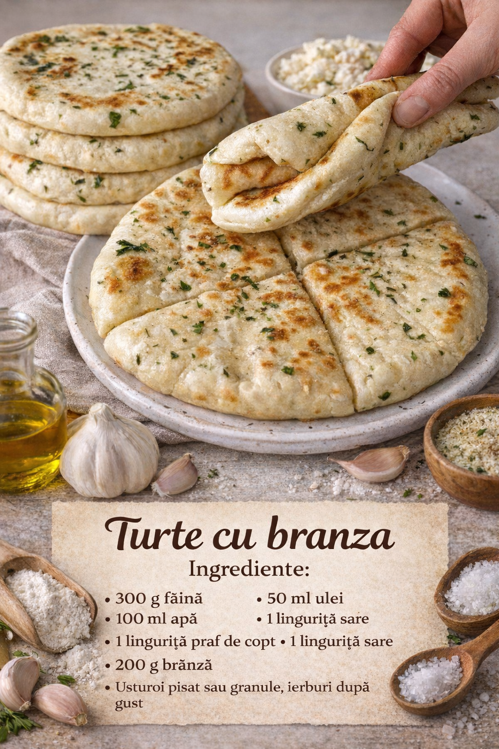 Turte facute in tigaie cu usturoi si branza, nu o sa te mai opresti din mancat