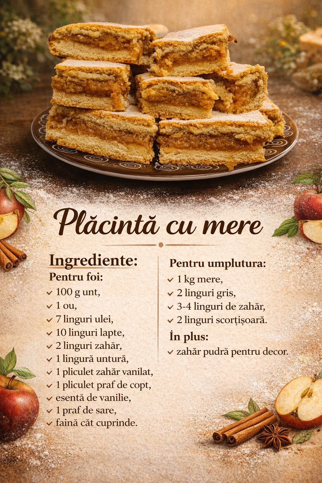 Nu rata:  Prajitura cu mere si budinca. Desert cremos si revenos. Este potrivit pentru orice ocazie